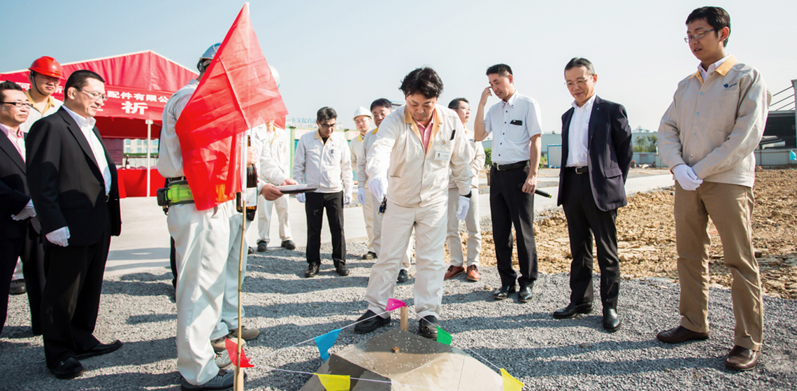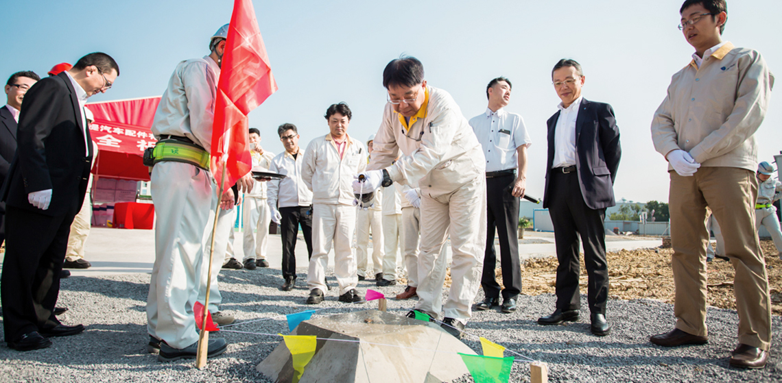 2017725日,高橋社長(zhǎng)、高橋管理本部長(zhǎng)、荒井品質(zhì)本部長(zhǎng)、GAC間淵總經(jīng)理,AHC松下總經(jīng)理、近藤副總經(jīng)理及AHC高層管理者與施工方相關(guān)人員共同出席3#鑄造工廠奠基儀式。
