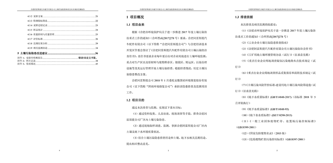 《合肥阿雷斯提汽車配件有限公司 土壤污染隱患排查報告》信息公開