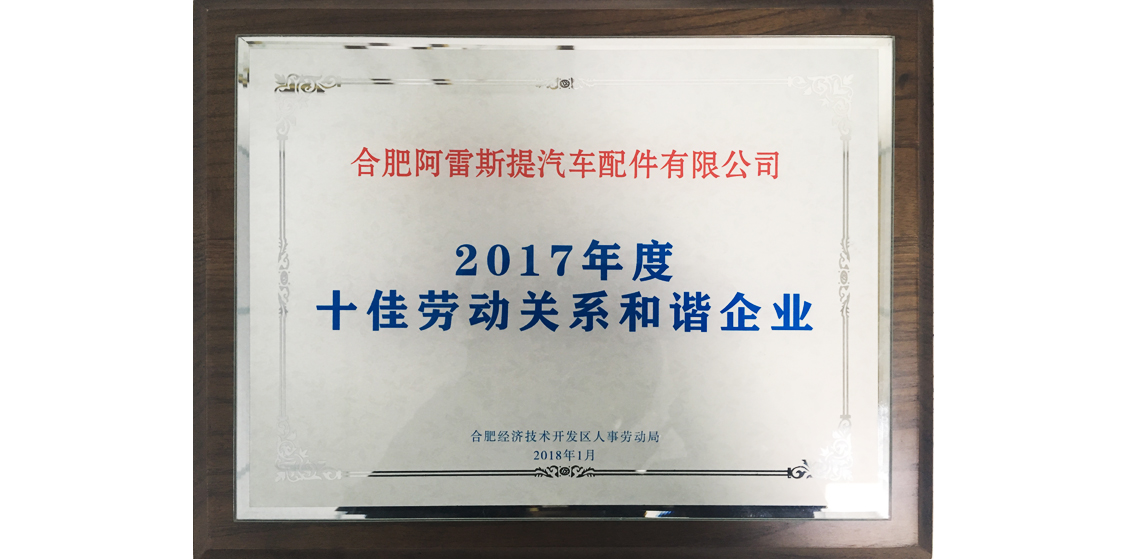 在2018年1月25日經(jīng)開區(qū)管委會(huì)舉辦了合肥市經(jīng)開區(qū)人力資源年會(huì),經(jīng)開區(qū)人事勞動(dòng)局評(píng)選出了”2017年度經(jīng)開區(qū)十佳勞動(dòng)關(guān)系和諧企業(yè)”,我司繼2016年后再次得到此榮譽(yù)。