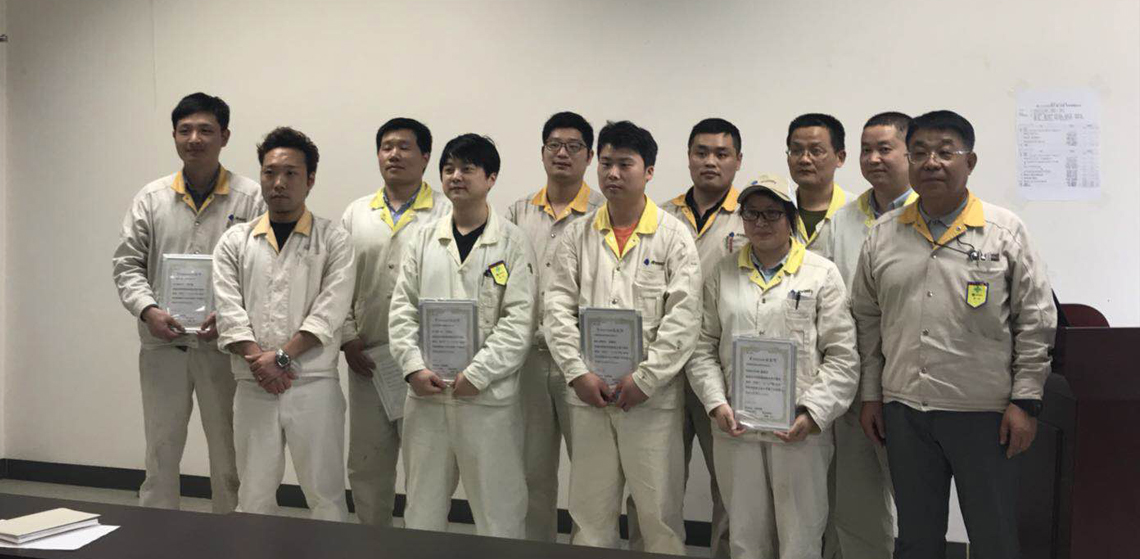 2018年 3月30日、4月1日,E-trainer培訓(xùn)進(jìn)舉行了2017年度第三階段性報(bào)告會(huì)。 松下總經(jīng)理、近藤副總經(jīng)理和各部門領(lǐng)導(dǎo)出席了本次報(bào)告會(huì),對(duì)本屆E-trainer培訓(xùn)學(xué)員的報(bào)告進(jìn)行提問并評(píng)價(jià)打分??偨?jīng)理給各位學(xué)員頒發(fā)了畢業(yè)證書和勛章,對(duì)學(xué)員們的整體水平提升給與了肯定!