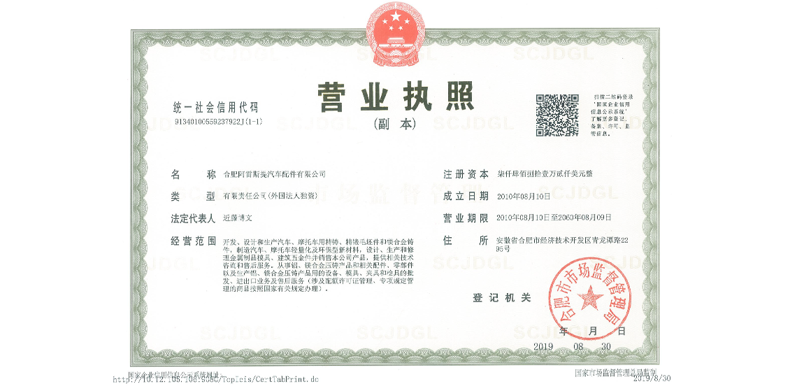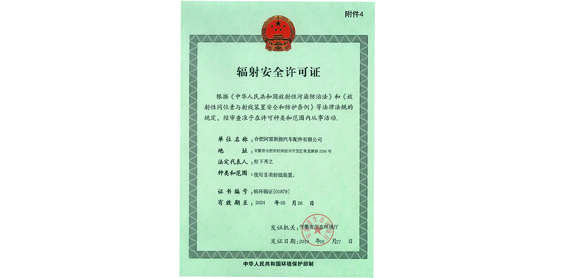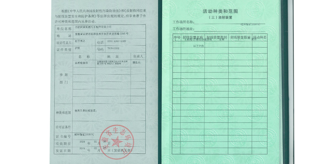 阿雷斯提輻射安全許可證、營業(yè)執(zhí)照及一般納稅人證明
