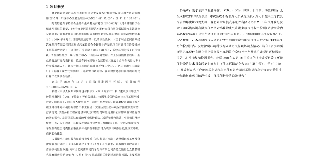 附件:阿雷斯提汽車鋁鎂合金鑄件生產基地擴建項目階段性竣工環(huán)境保護驗收監(jiān)測報告