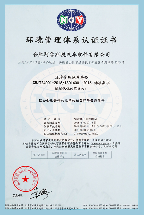 環(huán)境管理體系認(rèn)證證書(shū)中文版